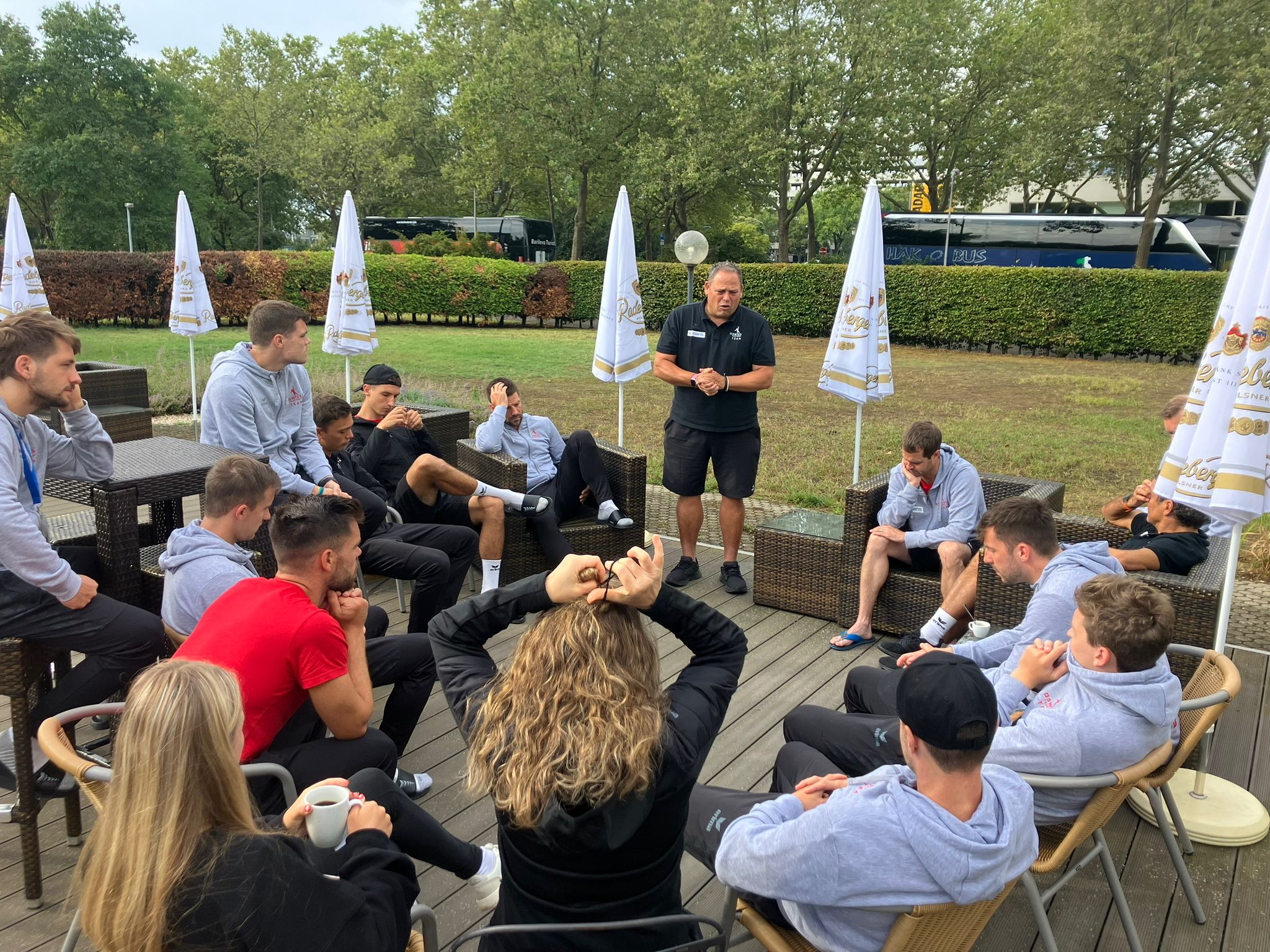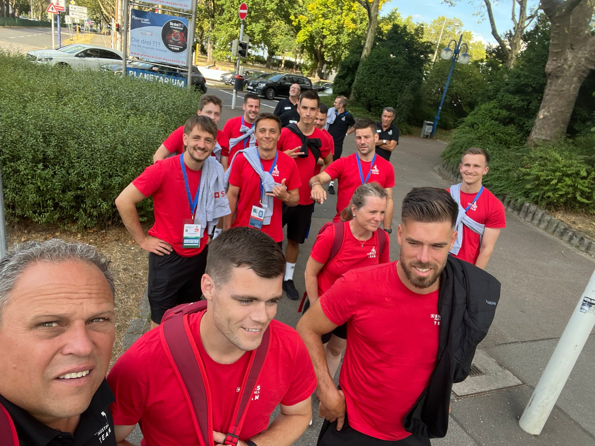 Nach dem Anreisetag gestern stehen heute für die Schweizer Nati die ersten Trainingseinheiten in Mannheim auf dem Programm. Nach dem gemeinsamen Frühstück beginnt um 9 Uhr das erste Training auf den Einspielfeldern ausserhalb des Rhein-Nackar Stadions, wo dann ab morgen die ersten Gruppenspiele ausgetragen werden. Am späteren Nachmittag (16:30 Uhr) steht noch eine zweite Trainingseinheit auf dem Programm für die Jungs von Oliver Lang und Stephan Jundt.