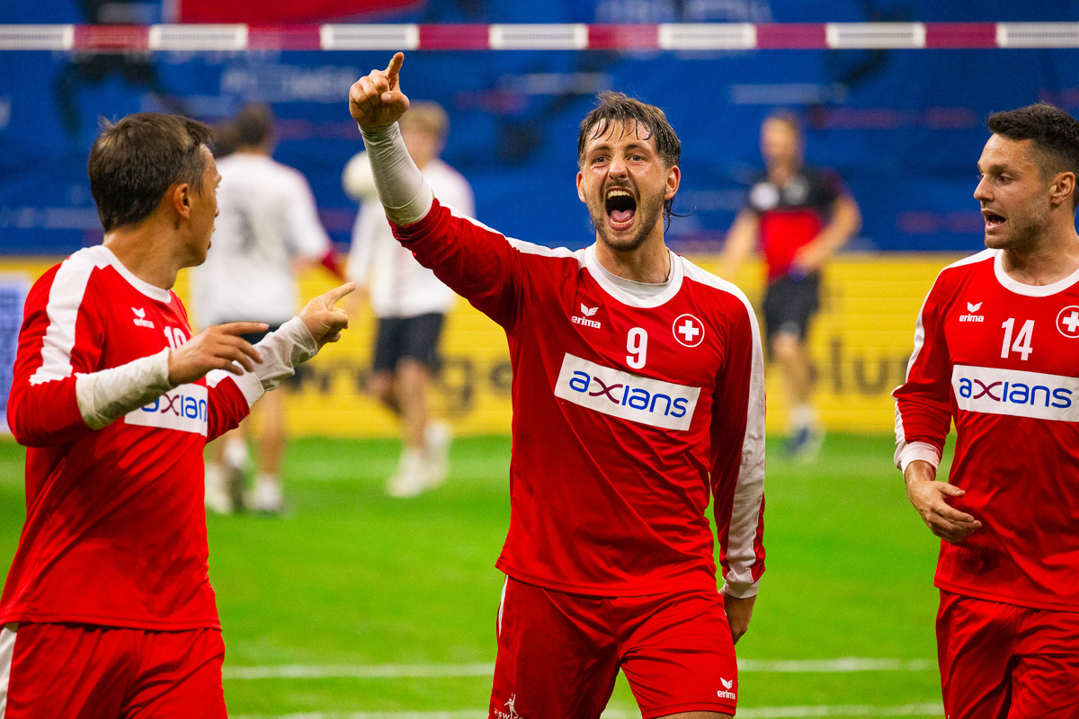 Die Schweiz startet mit folgender Aufstellung ins Duell mit Weltmeister Deutschland. Im Angriff spielt das Duo Raphael Schlattinger und Marcel Haltiner, der sein Debüt an einem Grossanlass gibt. In der Mitte übernimmt Rico Strassmann das Zuspiel und in der Abwehr laufen Leon Heitz und Malik Müller auf.