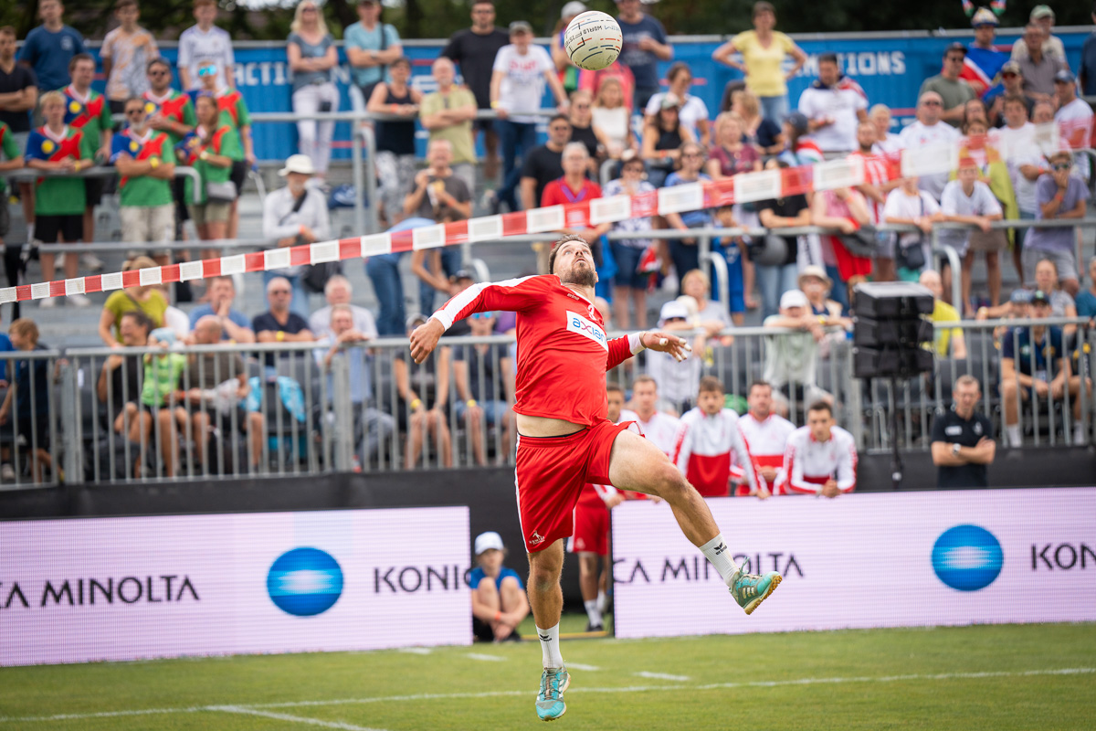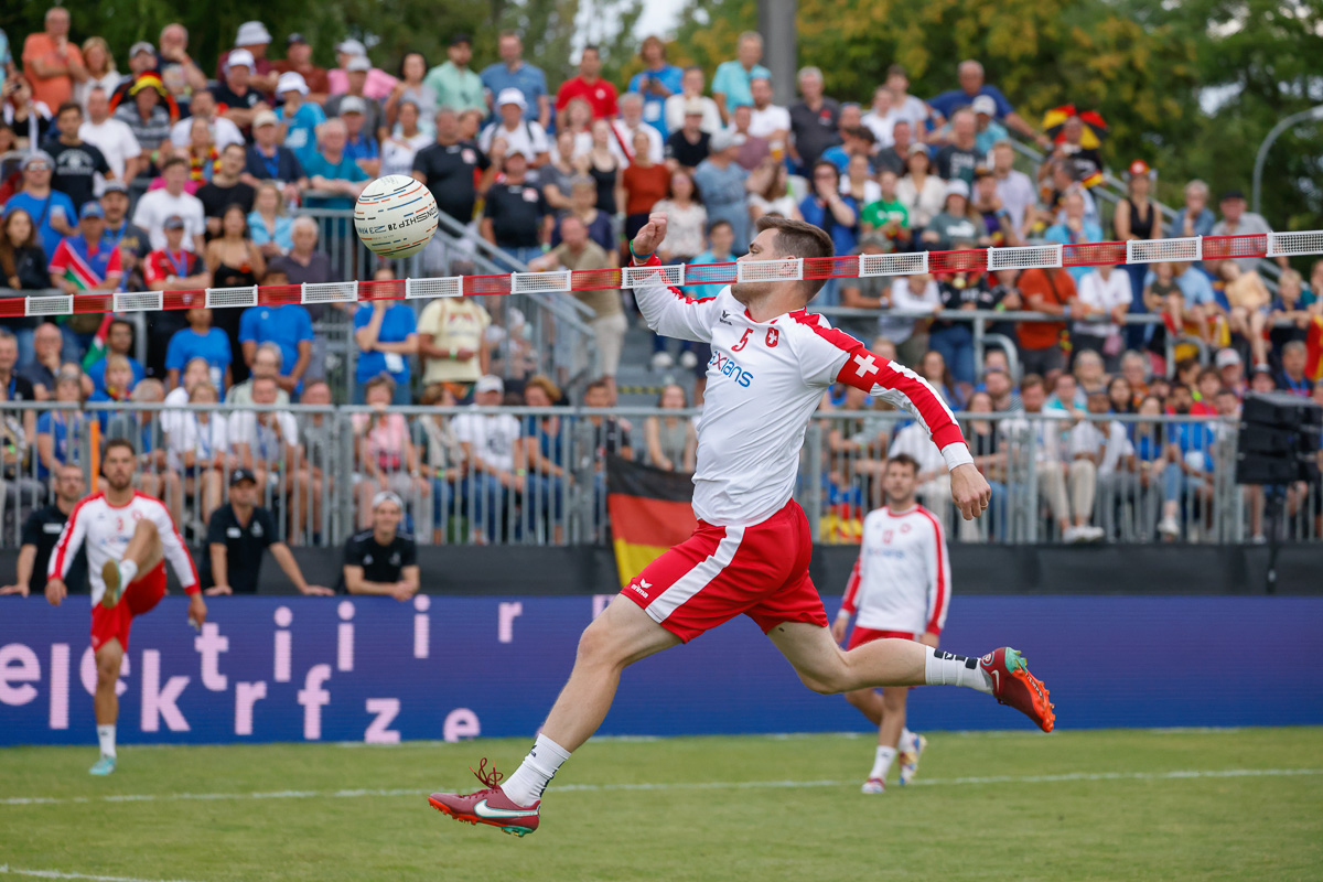 Die Schweizer Nati zeigt im Viertelfinal einen souveränen Auftritt. Gegen die gefährlichen Aussenseiter aus Argentinien zeigten die Schweizer eine konzentrierte Leistung und gewannen in drei Sätzen mit 11:3, 11:8, 11:7. Auf dem Feld standen für die Schweizer im Angriff die beiden Routiniers Raphael Schlattinger und das gestrige Geburtstagskind Ueli Rebsamen. In der Mitte übernahm Rico Strassmann das Zuspiel und auf den beiden Flügeln agierten Malik Müller und Leon Heitz.